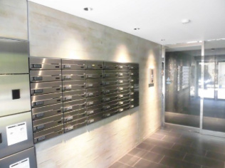 オートロック付きのエントランスです。住人以外の人物が建物内に容易に立ち入れないようにすることで、防犯性と安心感を高める役割を果たします。
