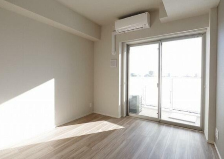 南向き明るい6帖のお部屋です。柱の出にくい構造で、すっきりとした居住空間が広がり、家具の配置もしやすい設計です。