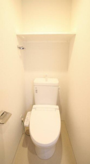 個室トイレで静かな環境です。温水洗浄便座の機能付き、手洗いスペースもあるのでいつでも快適に清潔に保つことができます。