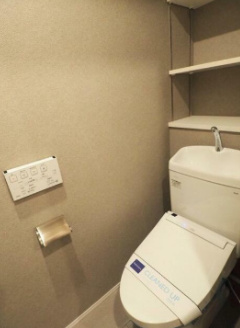 個室トイレで静かな環境です。温水洗浄便座の機能がついているため、いつでも快適に清潔に保つことができます。
