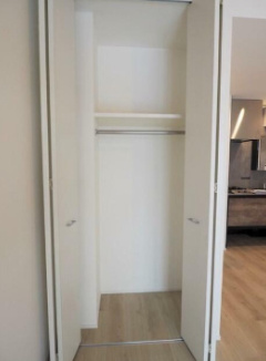 ハンガーパイプや棚が備え付けられているので、衣類の整理整頓もしやすく収納効率が高まります。
