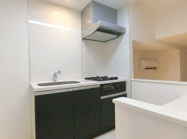 2口コンロのシンプルなシステムキッチンです。シンク・コンロ・調理台・収納が一体化されており、見た目もすっきりしていて、掃除のしやすさにも優れています。グリル付きでお料理の幅が広がります。