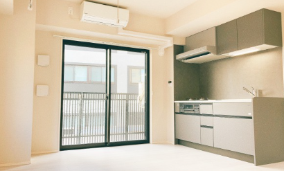 12帖のLDK、南西向きの2面採光で明るいリビングです。柱が少なく空間を有効に使えることで家具の配置がスムーズです。