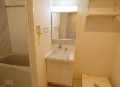 大きな鏡・電源コンセント・ライトなど、身支度に必要な設備が整っています。化粧やヘアアイロンを使ったセットなどの作業を洗面所でおこなえるので大変便利です。