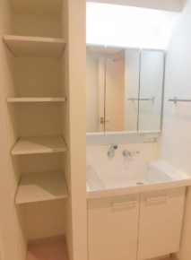 洗顔・歯磨き・メイク・ヘアセットなど、日常の身支度を落ち着いて行える環境が整っています。洗面台の周辺には収納スペースが設けられていることが多く、歯ブラシや化粧品などをすっきりと整理できるため、生活感を抑えた清潔な印象のインテリアにもつながります。