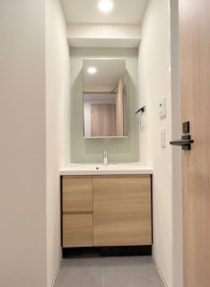 個室タイプのトイレは、生活空間としっかり分かれているため、落ち着いて使える独立性があります。来客があっても気兼ねなく利用でき、生活のプライバシーが守られるつくりです。また、温水洗浄便座が備わっていることで、季節を問わず快適に使える衛生的な環境が整っています。特に冬場の冷たさを感じにくく、日常の小さなストレスが軽減されます。清潔さと使いやすさが両立した設備なので、毎日の暮らしが自然と快適になり、住まい全体の満足度にもつながるポイントです。