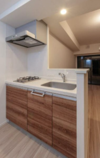 使いやすいカウンターキッチンが備わっています。お部屋の広さをしっかり感じられるように配置されており、キッチンに立ちながらリビング全体を見渡せる開放的な造りになっています。コンロは2口タイプで、同時調理がしやすく、自炊をされる方にもとても便利です。作業スペースも確保されているため、ひとり暮らしでも料理を楽しみたい方に向いています。築浅ならではの清潔感があり、毎日の料理が快適に感じられるキッチンです。