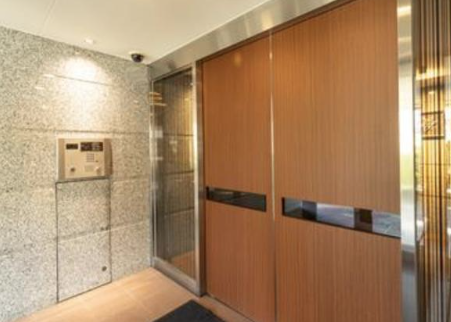 オートロック付きのエントランスです。住人以外の人物が建物内に容易に立ち入れないようにすることで、防犯性と安心感を高める役割を果たします。