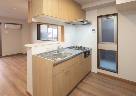 対面キッチンは、リビングやダイニングに向かって調理ができるため、家族との会話を楽しみながら料理ができるのが大きな魅力です。キッチンに立っていても空間が遮られず、開放感があり、部屋全体を見渡せる安心感があります。小さなお子様の様子を見守りながら家事ができたり、来客時にも自然にコミュニケーションが生まれたりと、暮らしの中での使い勝手がとても良いスタイルです。料理をしながらテレビを見たり、家族と会話を楽しんだり、生活の動線が自然につながるため、毎日の時間がより豊かに感じられるキッチンです。