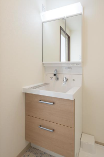 洗顔・歯磨き・メイク・ヘアセットなど、日常の身支度を落ち着いて行える環境が整っています。洗面台の周辺には収納スペースが設けられていることが多く、歯ブラシや化粧品などをすっきりと整理できるため、生活感を抑えた清潔な印象のインテリアにもつながります。
