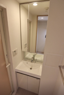 洗面スペースと浴室が分かれているため、朝の身支度がしやすく、化粧品やヘアケア用品をゆったり置ける点が大きな魅力です。鏡の前で落ち着いて準備ができるので、生活のリズムが整いやすく、忙しい日でもスムーズに外出の準備ができます。