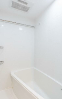 足を伸ばして入浴できる広さがあり、湯船にゆったり浸かることで心身ともにリラックスできる時間を過ごすことが可能です。浴室乾燥機完備で、湿気を素早く除去できるため、カビの発生を防ぎつつ、洗濯物の室内干しにも活用できます。