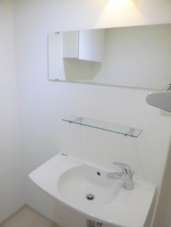 洗面と浴室を分けて使えるため清潔感があり、収納も最低限確保できるので、日常使いに便利です。