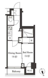 ダイニング4.4帖、洋室3.1帖で構成されており、食事をする空間とくつろぐ空間をしっかり分けられる点が魅力です。ダイニングにはキッチンと生活スペースを効率よくまとめることができ、コンパクトながらも無駄のない動線で日々の生活をスムーズに送ることができます。洋室は寝室として使いやすい広さが確保されており、ベッドや収納家具も配置しやすく、落ち着いたプライベート空間を演出できます。