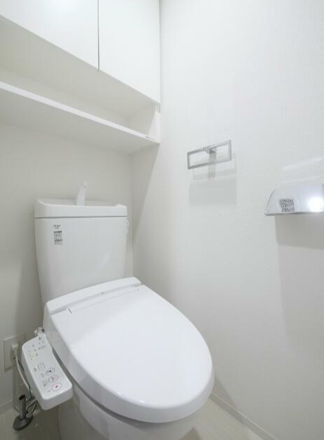 温水洗浄便座付きのトイレです。トイレ使用後に温水で洗浄できるため、衛生的にお使いいただけるだけでなく、日常的な快適性も高まります。特に冬場は便座が冷たくなりにくく、年間を通して快適にご利用いただける設備です。また、最近では温水洗浄便座を重視されるお客様も多く、賃貸物件の中でも人気の設備の一つとなっています。最初から設置されていることで、ご入居後にご自身で取り付ける手間もなく、すぐに快適な生活を始めていただける点も魅力です。